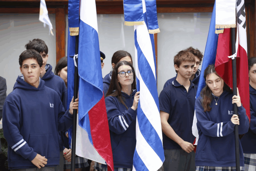 Presentes en el acto las banderas de Uruguay y Argentina que tanto la escuela n 5 de Punta del Este como así tambien las del Instituto Uruguayo Argentino